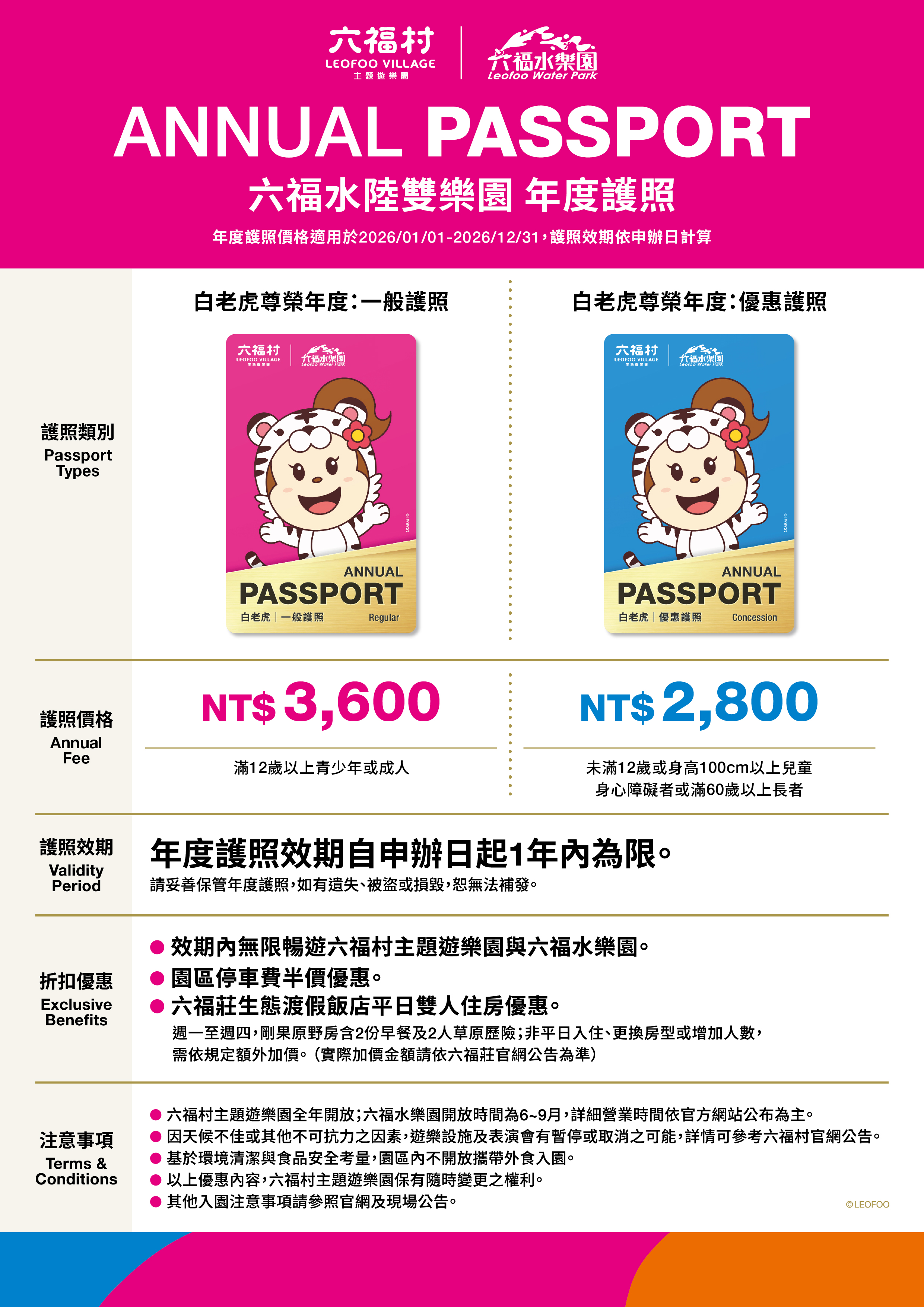 六福村年度護照使用注意事項: