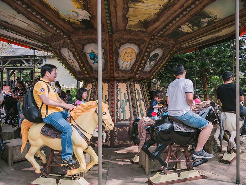騎兵隊是非洲部落版的旋轉木馬,非常適合小朋友的遊樂設施。在騎乘奔馳的瞬間,您可以想像化身沙漠商旅,橫度於沙漠之間買賣,沙漠沿途的駝鈴聲,讓人神馳嚮往。